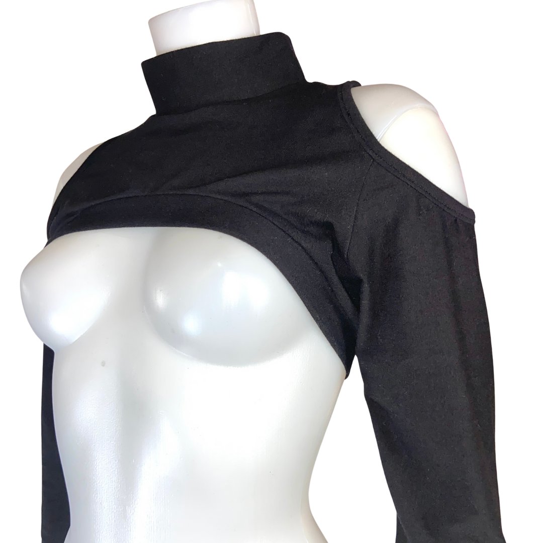 Long sleeve turtleneck crop shrug with shoulder cutouts